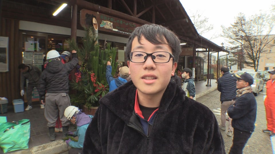 「僕たち4人が手伝って立派な門松になったのでぜひ皆さん見に来てください」
