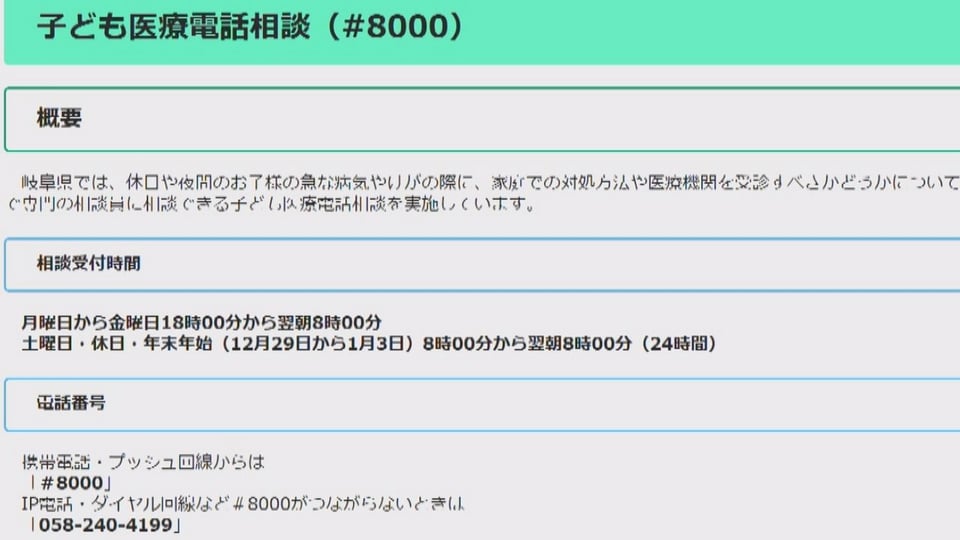 年末年始の救急医療体制 困ったときの電話相談窓口は局番なしの「#7119」 岐阜県