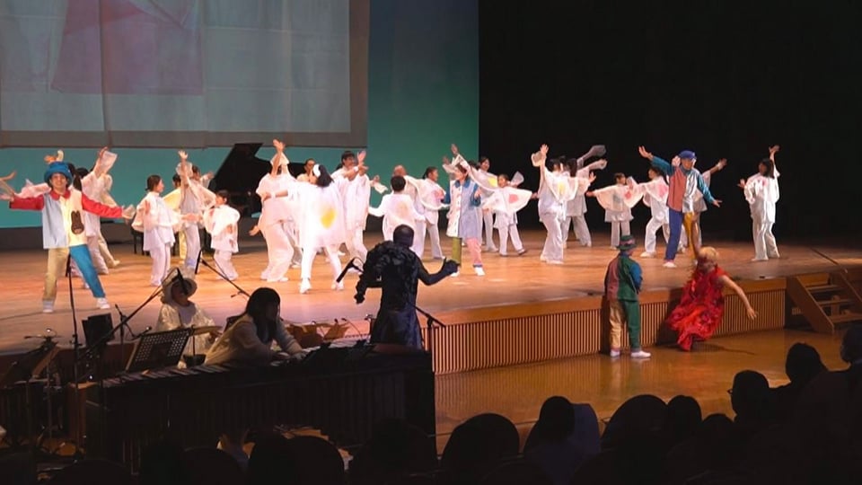 重いテーマではあるものの、明るく華やかな演出で舞台が展開され、最後に全員が集合して演者紹介が行われると、集まったおよそ900人の観衆から大きな拍手が送られていました。