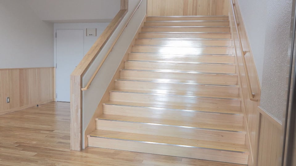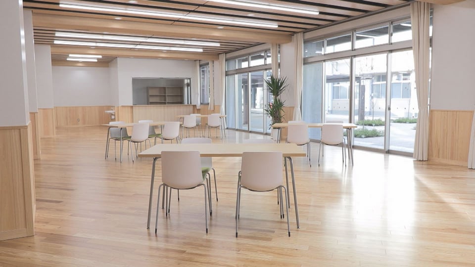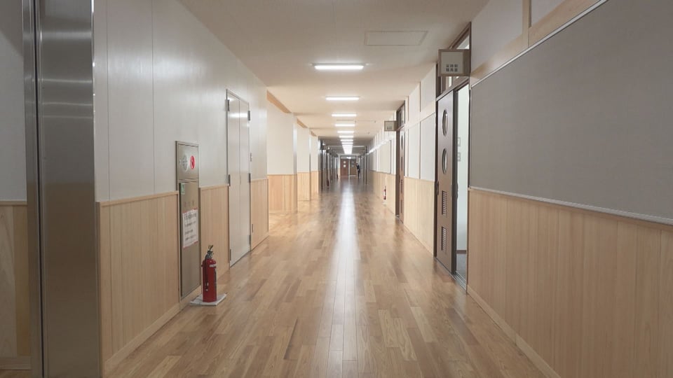 新校舎は鉄筋コンクリート造り3階建て、延べ床面積約3850平方メートル。建物内装には県産材がふんだんに使用されています。