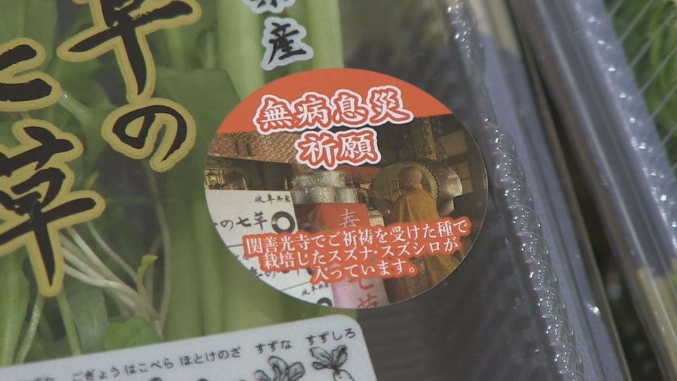 JAめぐみのが毎年販売する「岐阜の七草」は可児市の栽培農家が手がけていて、1年の健康と幸せを願い、スズナとスズシロは関市の関善光寺で祈祷された種から育てられています。