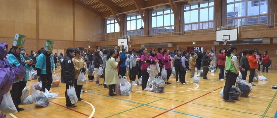 恵那市の市神神社の新春の例祭「七日福市」に人を呼び込もうと、「福女チャレンジ」が初めて開催され、参加した女性たちが7つの福をつかみ取ろうと健脚を競いました。