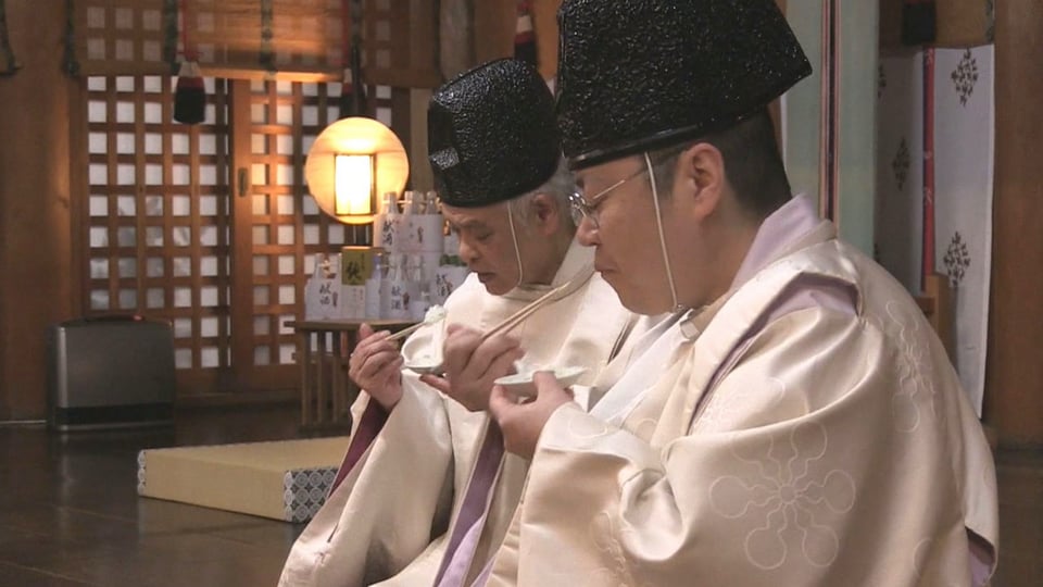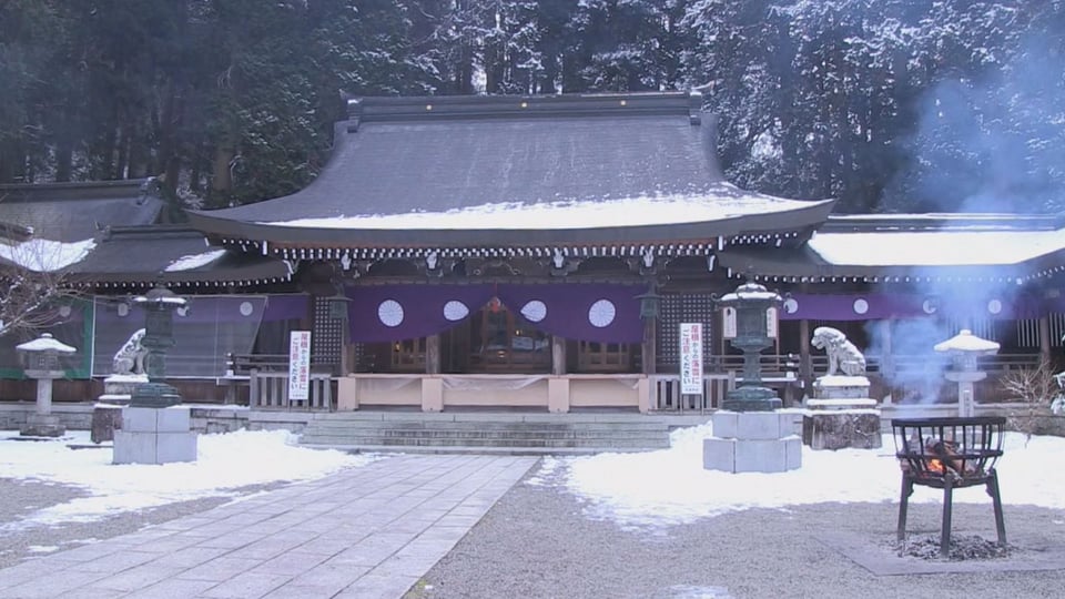 岐阜県高山市一之宮町の飛騨一宮水無神社で7日、「七草がゆ」を食べて1年の健康を祈る伝統の七草粥祭が営まれました。