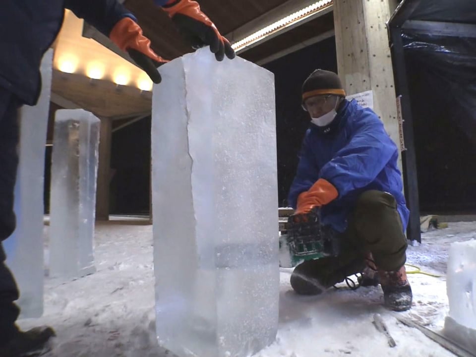 高山市の飛騨・世界生活文化センターでは、1月10日から始まる「氷と灯りの祭典2026」を前に、氷彫刻の制作が行われています。