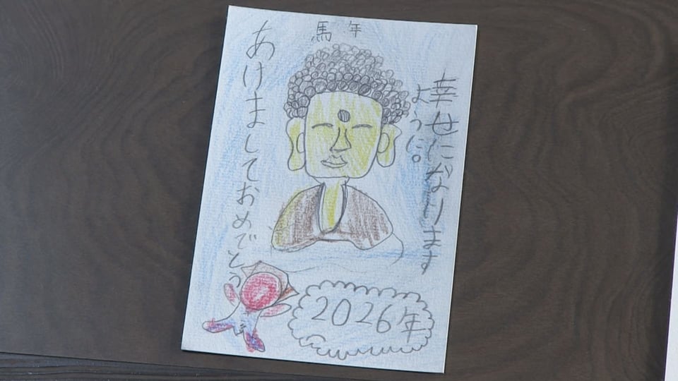岐阜市の正法寺の岐阜大仏に親しんでもらおうと「大仏様への年賀状展」が開かれました。