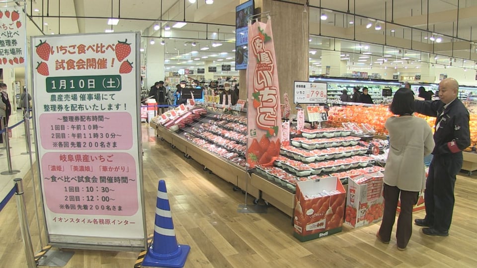 岐阜が誇るブランドイチゴ「華かがり」、「美濃娘」、「濃姫」を食べ比べできる『岐阜いちごフェア』が各務原市の商業施設で行われました。
