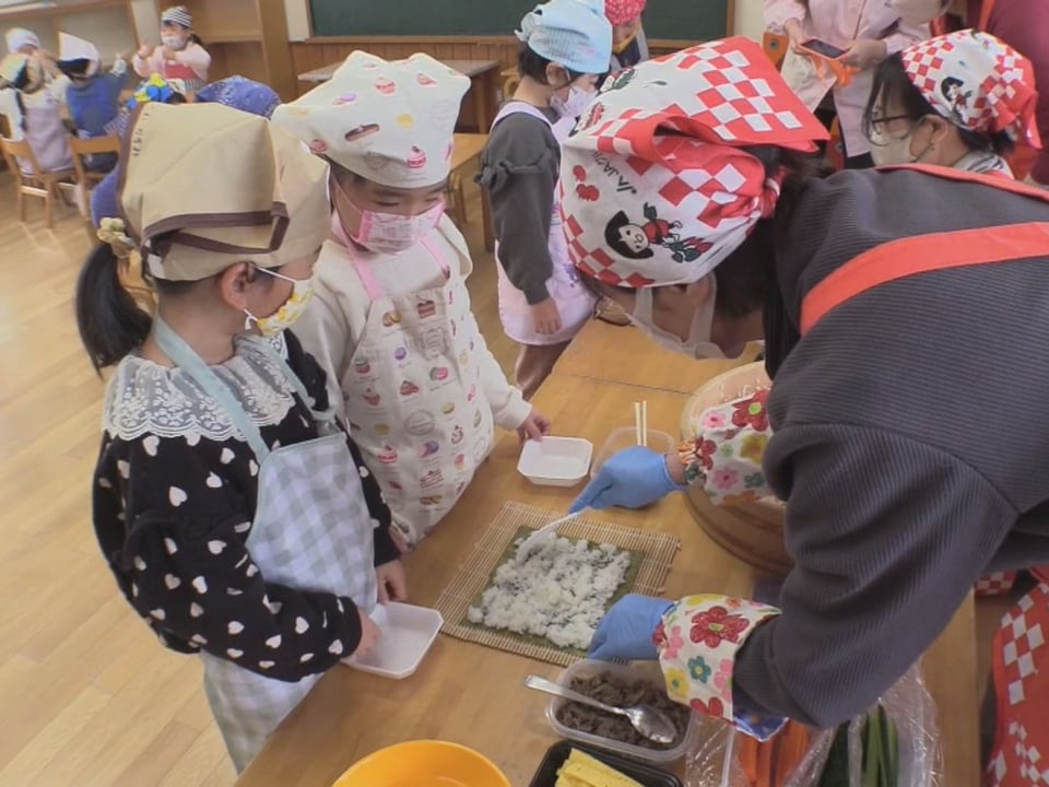 節分を前に園児が恵方巻づくりを体験 岐阜県高山市
