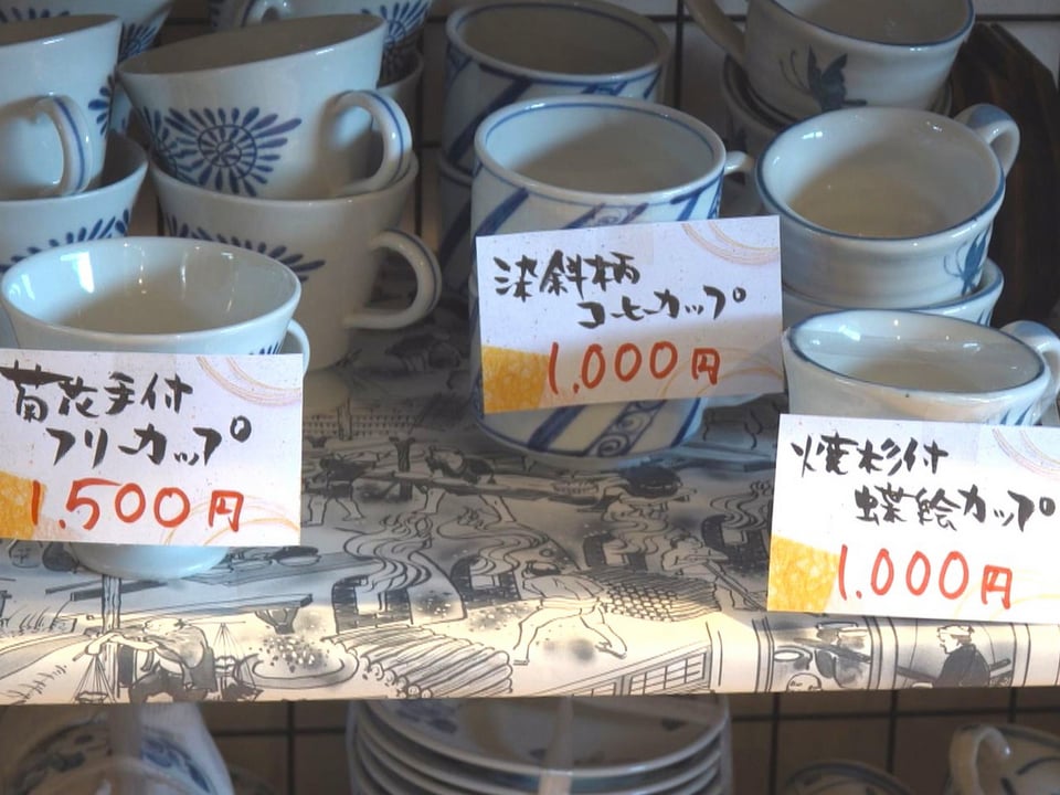 今では貴重となった職人の手書きによる染付の食器、茶道具、花器をはじめ、陶器のテーブルライターなど珍しい品が並び、購入もできるということです。