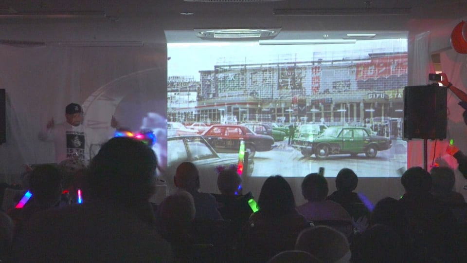 昭和や平成のヒット曲に合わせて懐かしい写真などが投影され、施設はまるでディスコのような空間に変わりました。