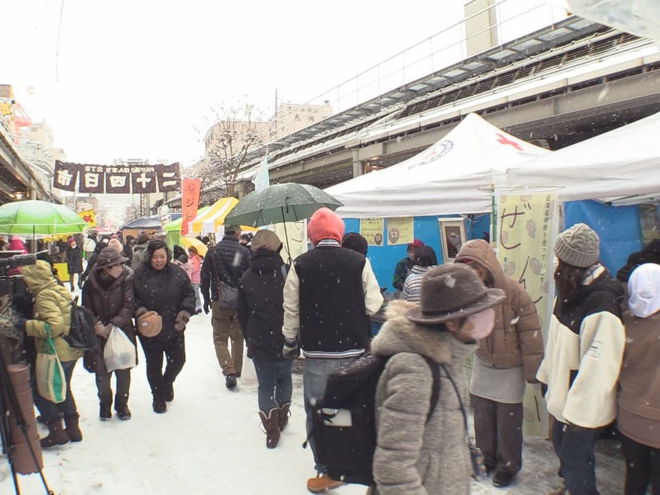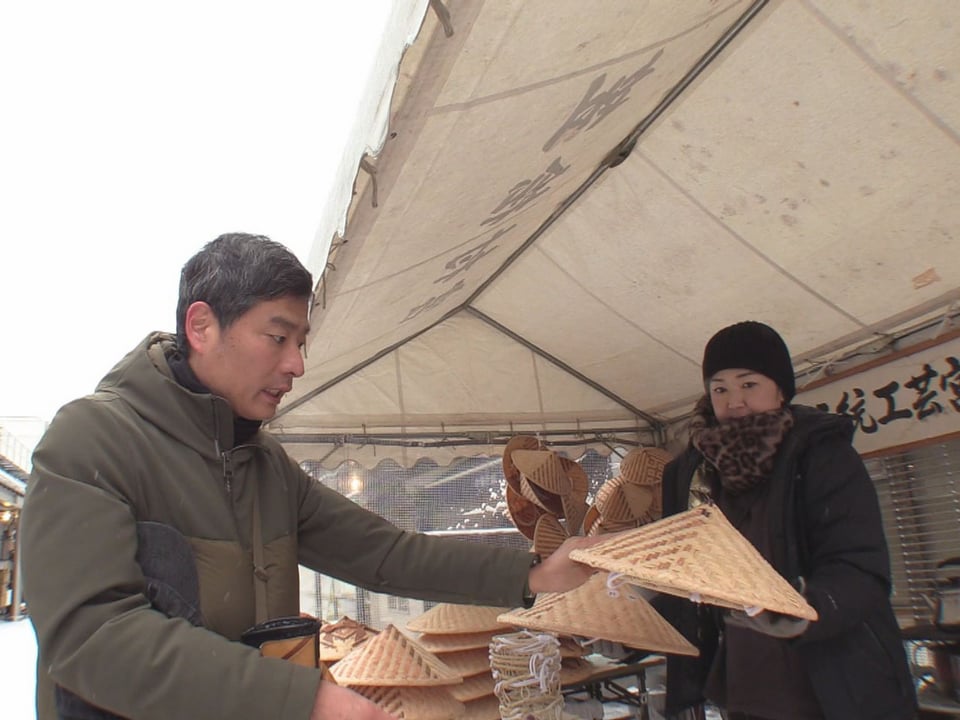 雪の中でもにぎわい 岐阜県高山市で「二十四日市」 宮笠など伝統工芸品並ぶ