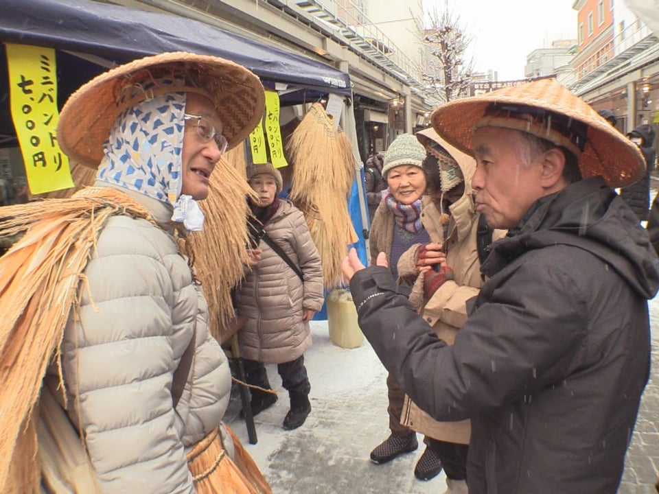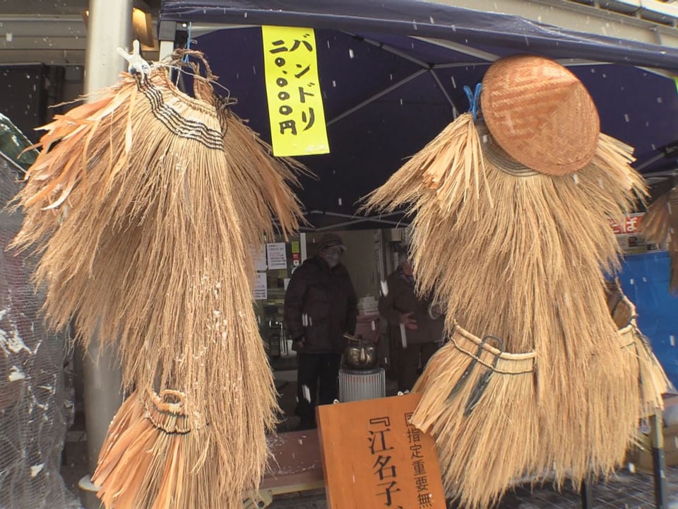 また、稲わらなどで編んだ昔なからの雨具、「江名子バンドリ」の店が7年ぶりに軒を連ね注目を集めていました。