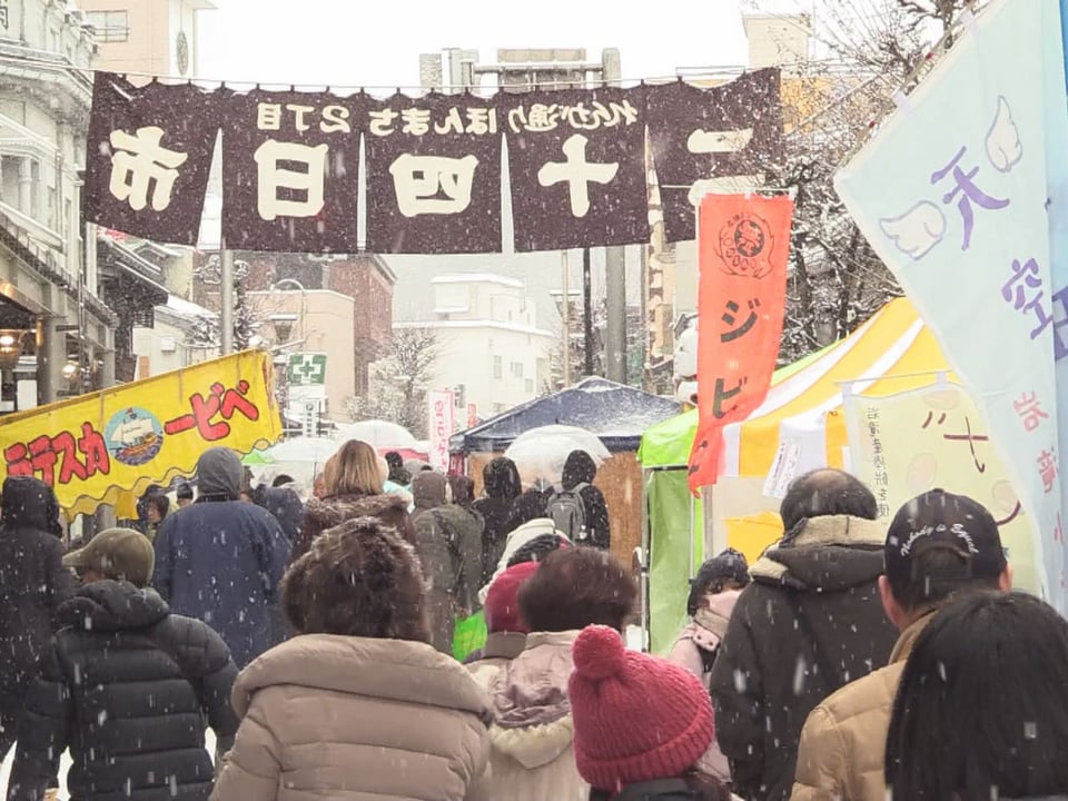飛騨高山の冬の風物詩「二十四日市」が開催され、伝統工芸品などを買い求める人たちでにぎわいました。