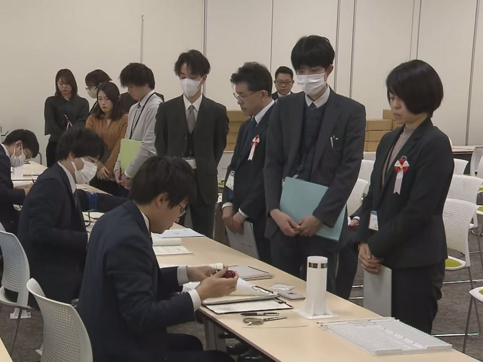 1区から5区までの小選挙区ごとに受付のテーブルが並び、係員らが受付順を決める抽選の仕方や届出書類の審査、選挙資材の交付など 一連の手順を確認しました。