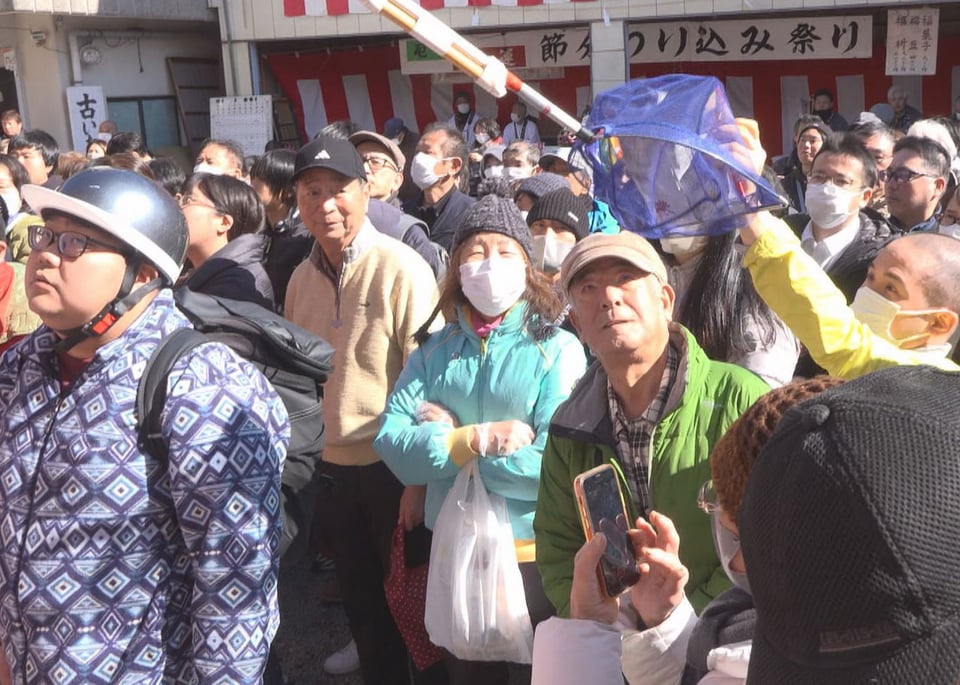 岐阜市にある玉性院では、毎年「玉性院節分つり込み祭り」が行われていて、今年で75回を迎えます。今夜のつり込み祭り行列を前に、恒例の豆まきが行われました。