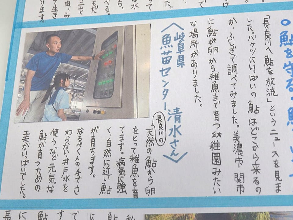 最優秀賞に輝いたのは、岐阜市立三里小学校4年吉永しおりさんの「長良川の鮎おうえん新聞」です。