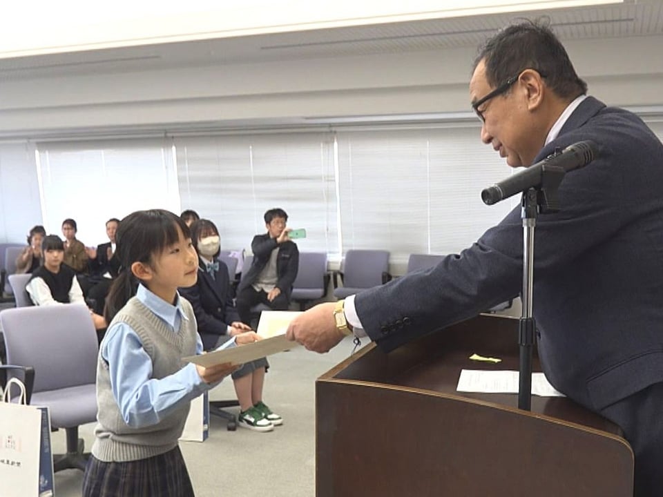 上位入賞者の表彰式が岐阜新聞本社であり、矢島薫社長が「興味を持ったことを追究して表現する姿勢は大切なこと。その姿勢を持っていれば、いろいろな道が開けると思います」とあいさつしました。
