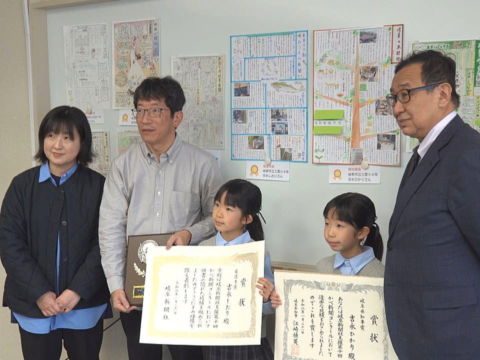 岐阜県内の小中学生が手作りした新聞作品の出来栄えを競う「かべ新聞コンクール」の表彰式が31日、岐阜新聞本社で行われました。