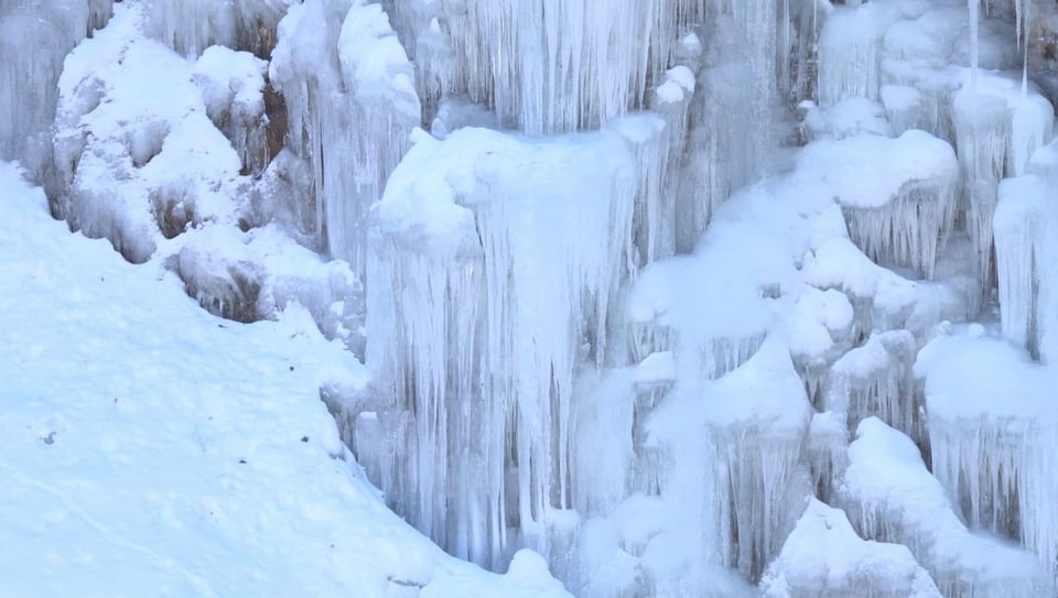 岐阜県高山市高根町では、天然のつららが岩肌に並ぶ「青氷の滝」が現れ、美しい姿を見せています。