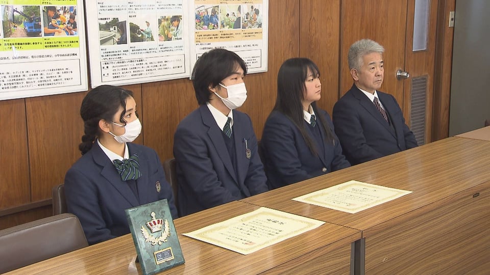 伊藤副本部長らは、受賞を祝うとともに「大会で貴重な経験、思い出ができたのならうれしい」と話し、生徒たちは「楽しかった」「視野が広がった」などと振り返り、「来年は最優秀賞を取りたい」と決意を新たにしていました。
