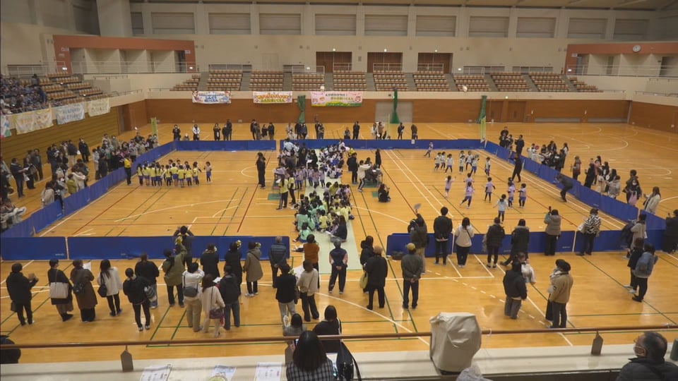 この日は、それぞれの保育園の年中園児が応援に訪れ、コートサイドでは、家族や園児が拍手や声援を送って大いに盛り上がっていました。