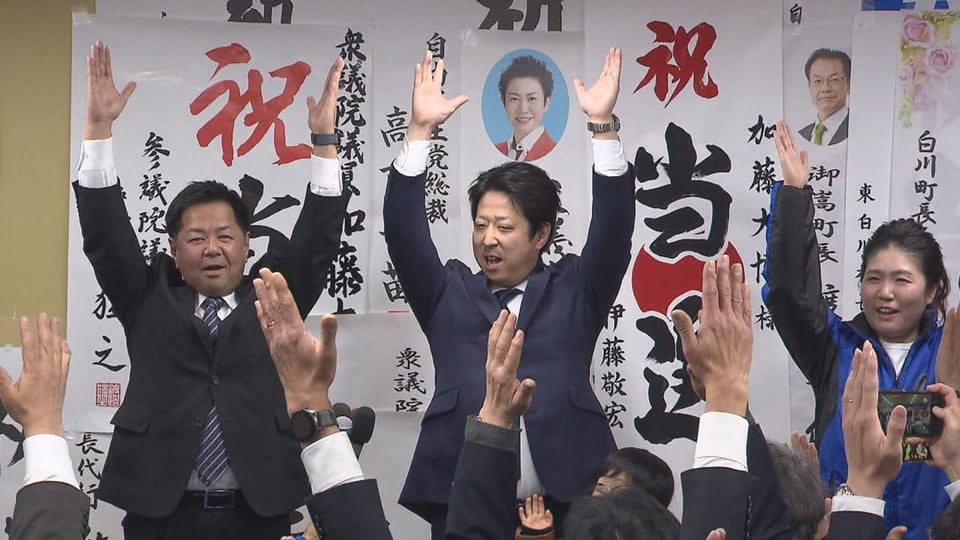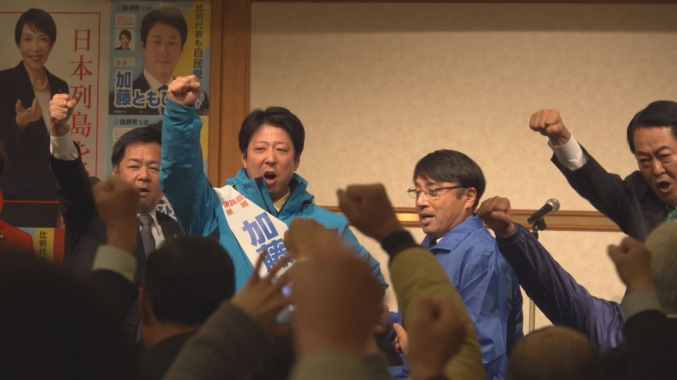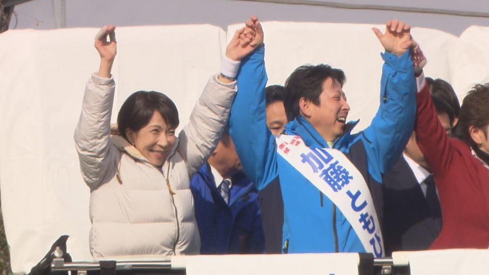 投開票日の8日。詰めかけた支援者と喜びを分かち合っていたのは加藤氏でした。感謝と決意を語り、気を引き締めていました。