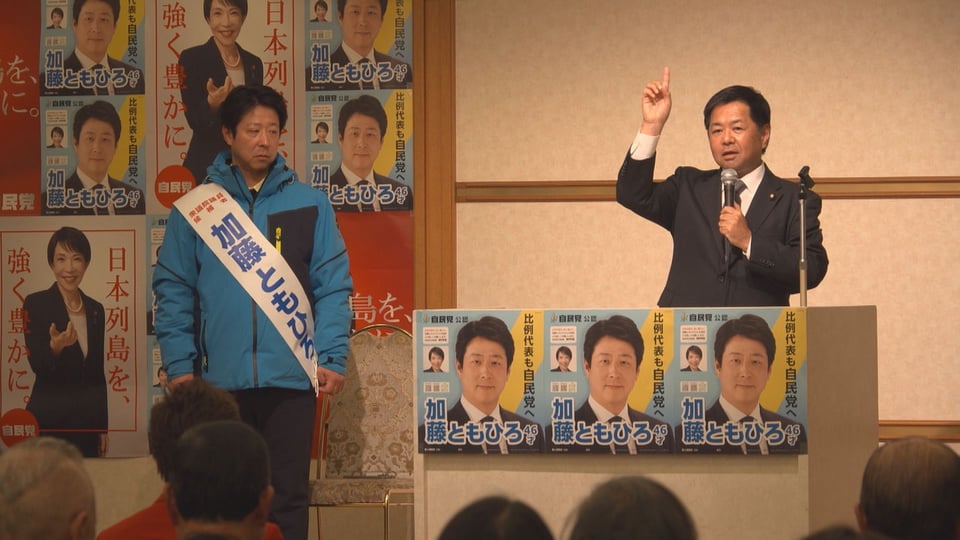 前回の選挙で岐阜4区の議席を失った自民党。党県連が「最重点区」と位置づけて、議席奪還の白羽の矢を立てたのは、加茂郡選出の元県議の加藤氏。公示直前に出馬を表明し、出陣式に臨みました。