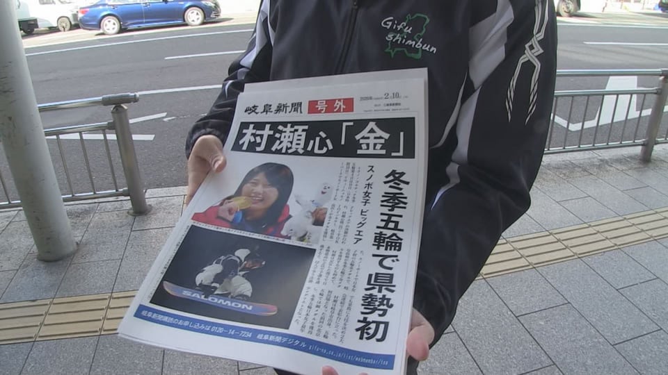 また、岐阜新聞社は村瀬選手の金メダル獲得で号外を発行し、名鉄岐阜駅前などで配りました。