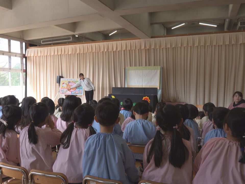 イベントが開かれたのは関市の桐が丘幼稚園で、はじめに、県警の幼児等連れ去り事案未然防止教育班「たんぽぽ」のメンバーが、知らない大人に付いていかないことなどを寸劇や歌などを交えて啓発しました。