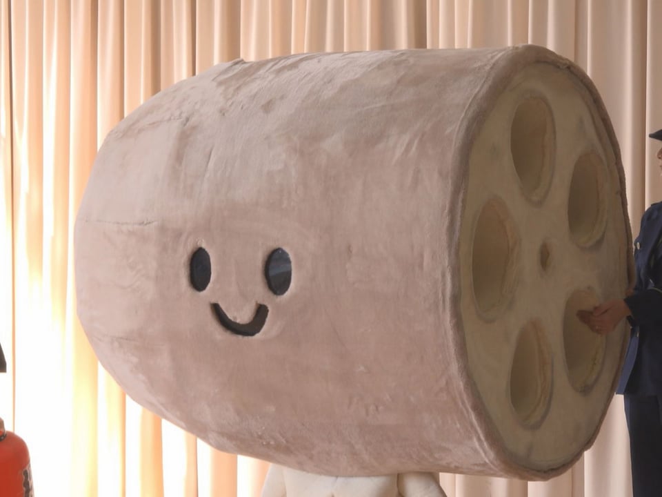 一方、こちらは羽島市特産のれんこんをモチーフに、ニセ電話詐欺の防止を呼びかける岐阜羽島警察署の「だまされんこん」。