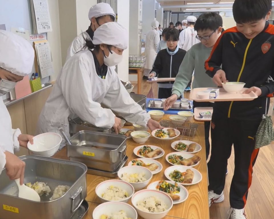 高山市荘川町の小中一貫校「荘川さくら学園」で、「中学生学校給食選手権」で最優秀賞を受賞した生徒考案の献立メニューが提供されました。
