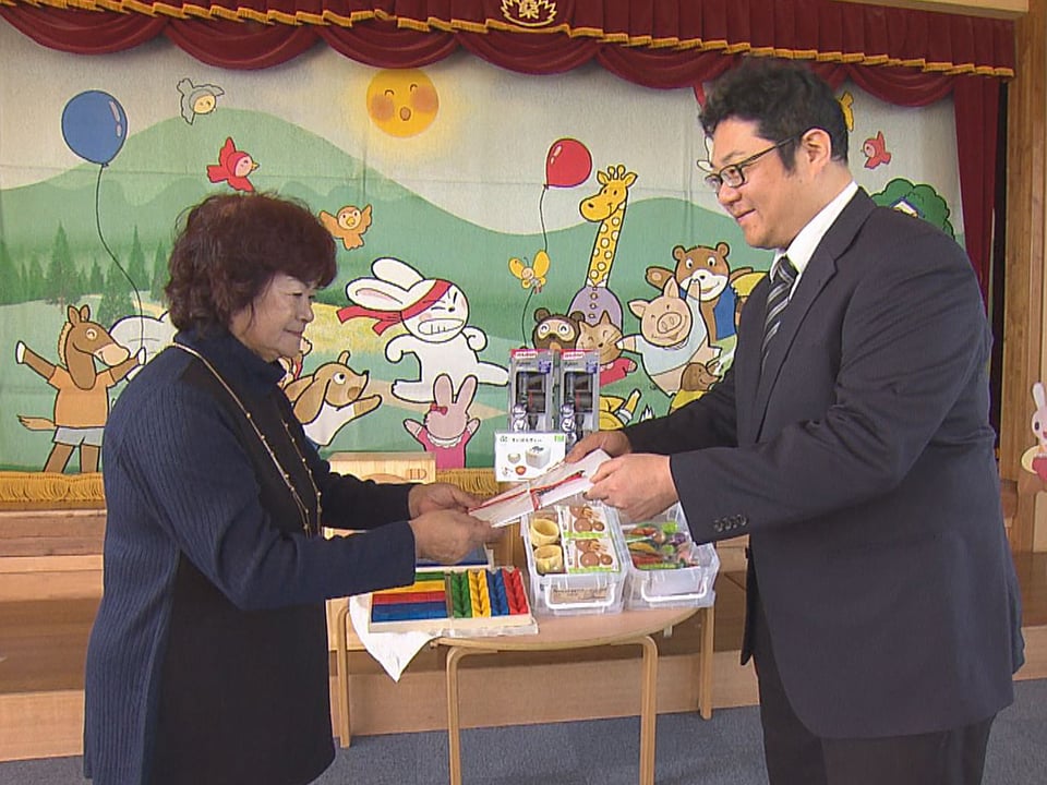 羽島市にあるレーザー加工・溶接の辰己製作所は、市内のこども園にままごとセットなどを寄贈しました。
