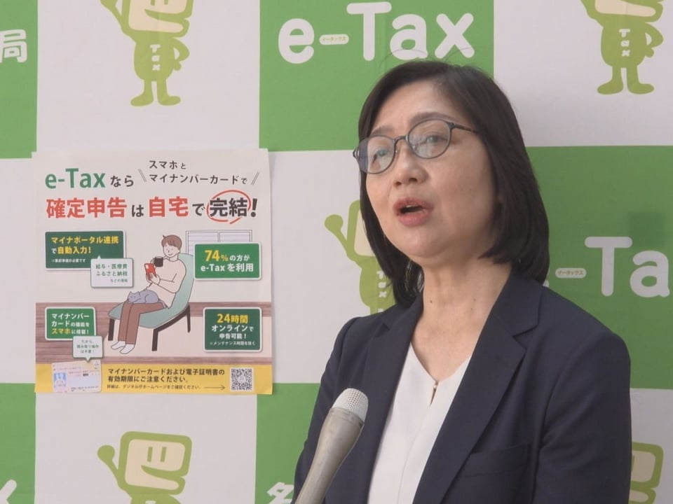 「今年の確定申告におきましても納税者の皆様にはスマホとマイナンバーカードを利用したe―Taxによる確定申告をお願いしたいと思っております。確定申告会場への入場に必要な入場整理券について、国税庁LINE公式アカウントでのオンライン事前予約のほか、会場での当日発行の2つの方法がございます。しかし、当日発行には数に限りがございますので、ぜひオンライン事前予約をご利用ください。 確定申告会場は大変混雑しておりますので、ぜひ簡単便利なご自宅からのe―Tax申告をご利用ください」