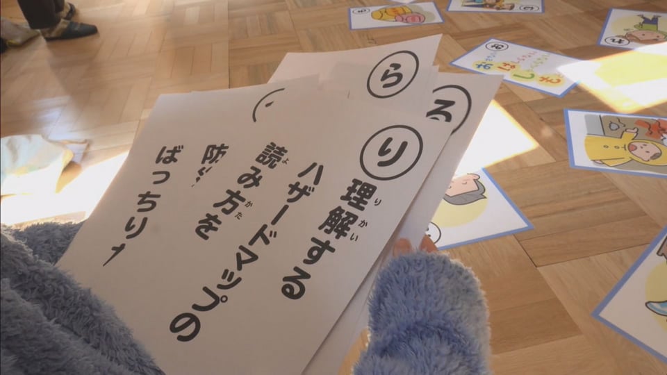 また、この日はA3サイズの大きな「防災かるた」の大会も行われ、参加者は楽しみながら防災知識を学んでいました。