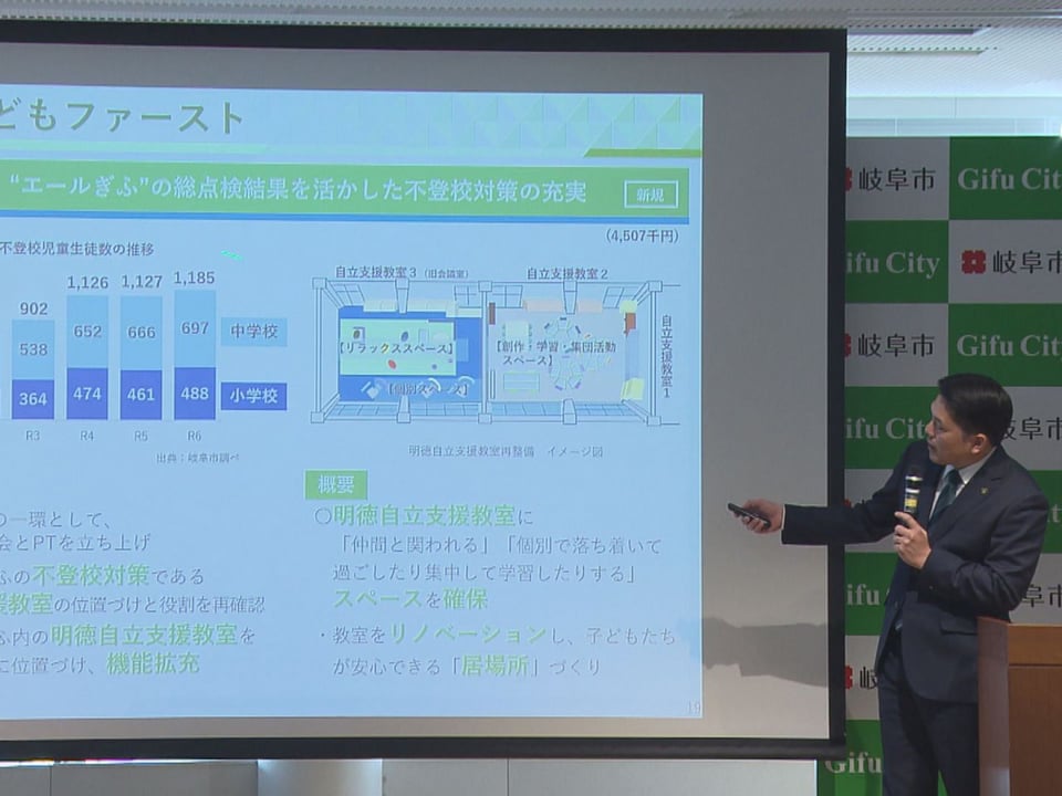 新規事業では「こどもファースト」で、不登校対策として市子ども・若者総合支援センター「エールぎふ」内の明徳自立支援教室の機能拡充に450万円、「岐阜を動かす社会基盤整備」で、旧中山道や加納城跡を整備、活用する歴史まちづくり構想の策定に900万円を盛り込みました。
