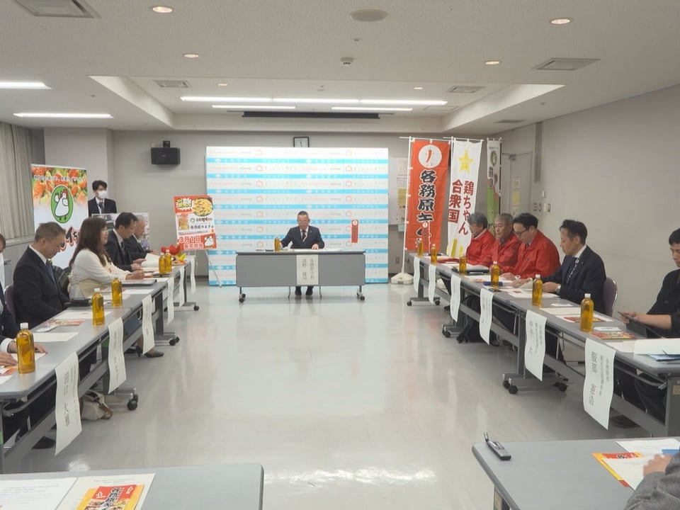 岐阜の2大ソウルフード、下呂市の名物「鶏ちゃん」と各務原市の特産品「各務原キムチ」を使ったコラボ商品が完成し、27日、各務原市で浅野健司市長への報告と試食会がありました。