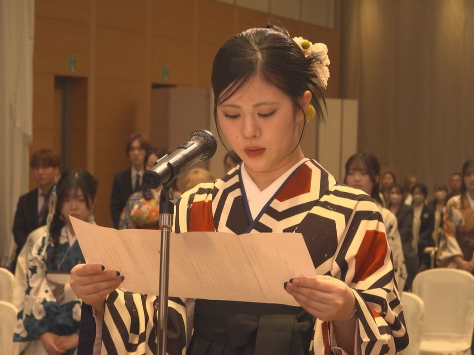 「この2年間は、今まで生きてきた20年間、そしてこれからの人生の中でも、かけがえのない時間です。今日卒業する私たちは、この学校で学んだことを胸に刻み、自信に満ちあふれた姿で、それぞれの道を歩んでいきます」