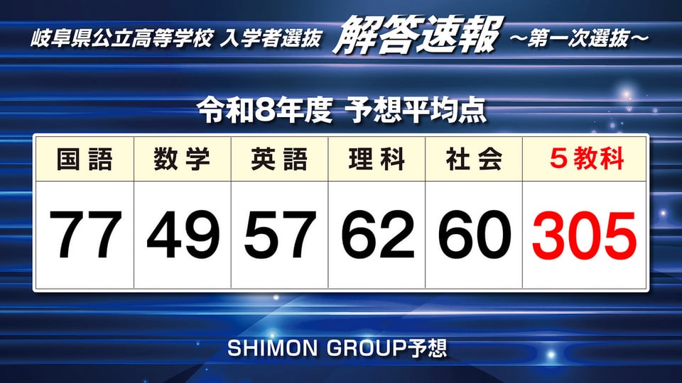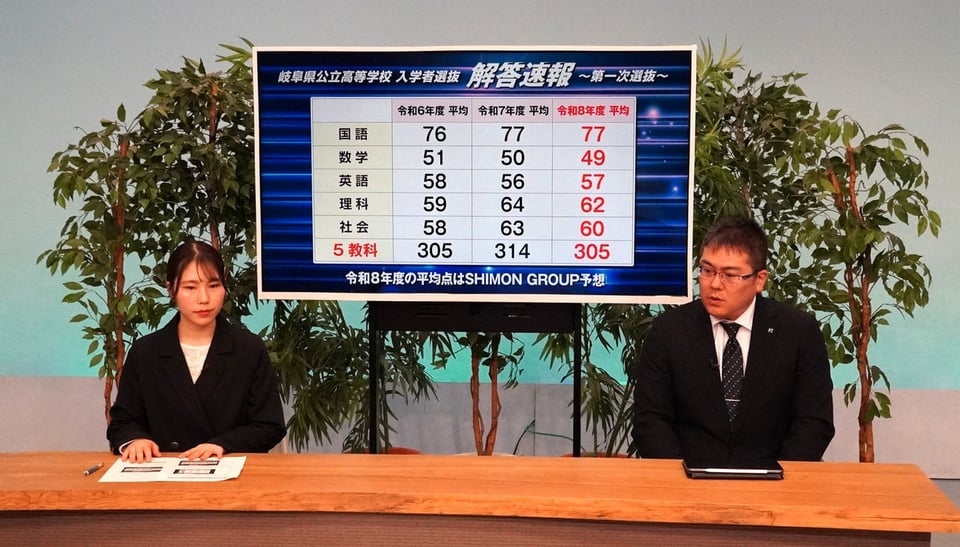 4日に行われた岐阜県内の公立高校入試の問題の難易度について、大手学習塾のSHIMON GROUPは、昨年度よりも「難しい」内容だったと分析しています。