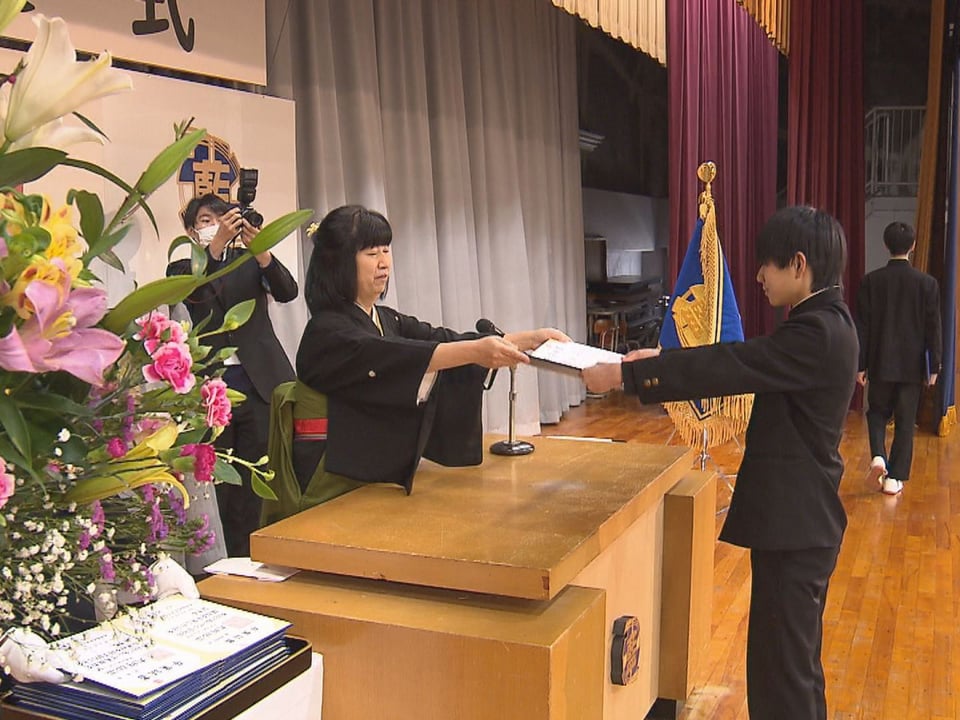県内の多くの中学校、義務教育学校で6日、卒業式が開かれ、卒業生は感謝の気持ちや決意を胸に学びやを巣立ちました。
