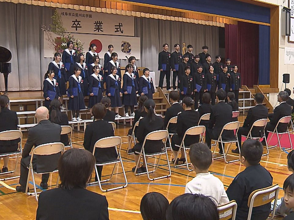 今年度、岐阜市立で初の小中一貫の義務教育学校としてスタートした「藍川北学園」では初の卒業式が行われました。