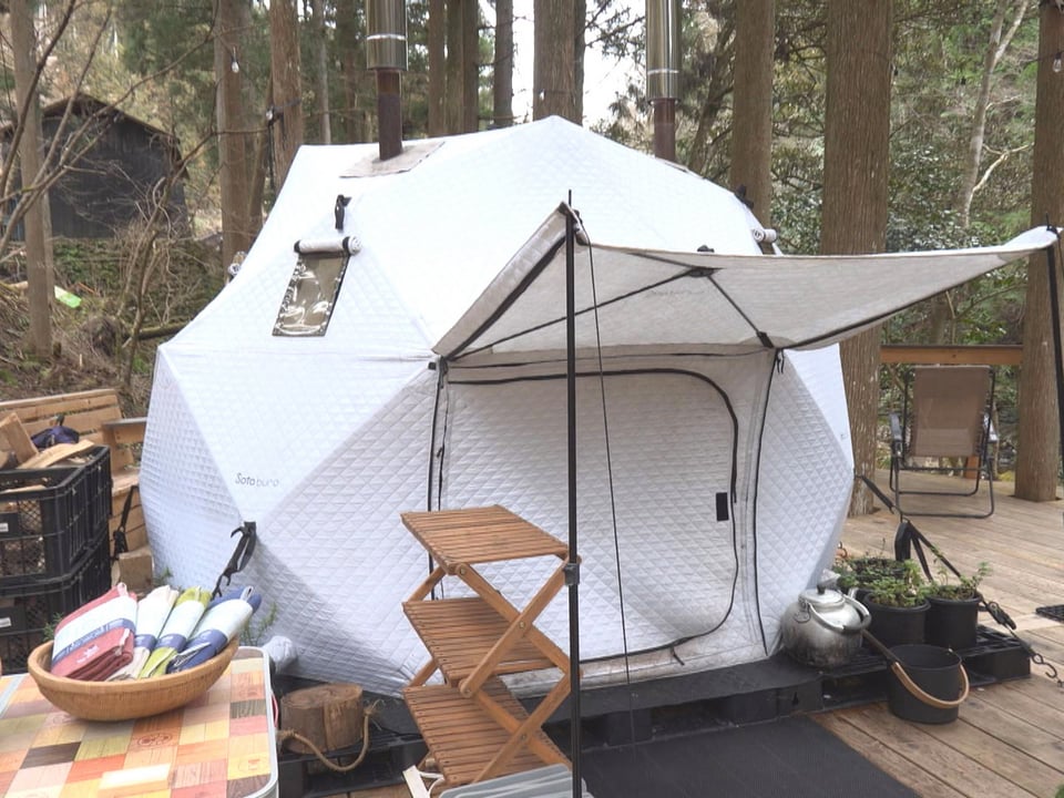 山県市でアウトドア事業などを手がける「タキビデザイン」が、非日常の空間で心身の癒しを目指す「リトリート」を楽しんでもらおうと約2年かけて整備してきました。