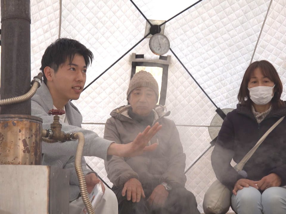 施設は貸し切り制で、ハーブは地元産の茶葉など数種類の中から選ぶことができ、スタッフが気温や天候、利用者のニーズなどに合わせてテント内の温度や蒸気の出方などを常時コントロールします。