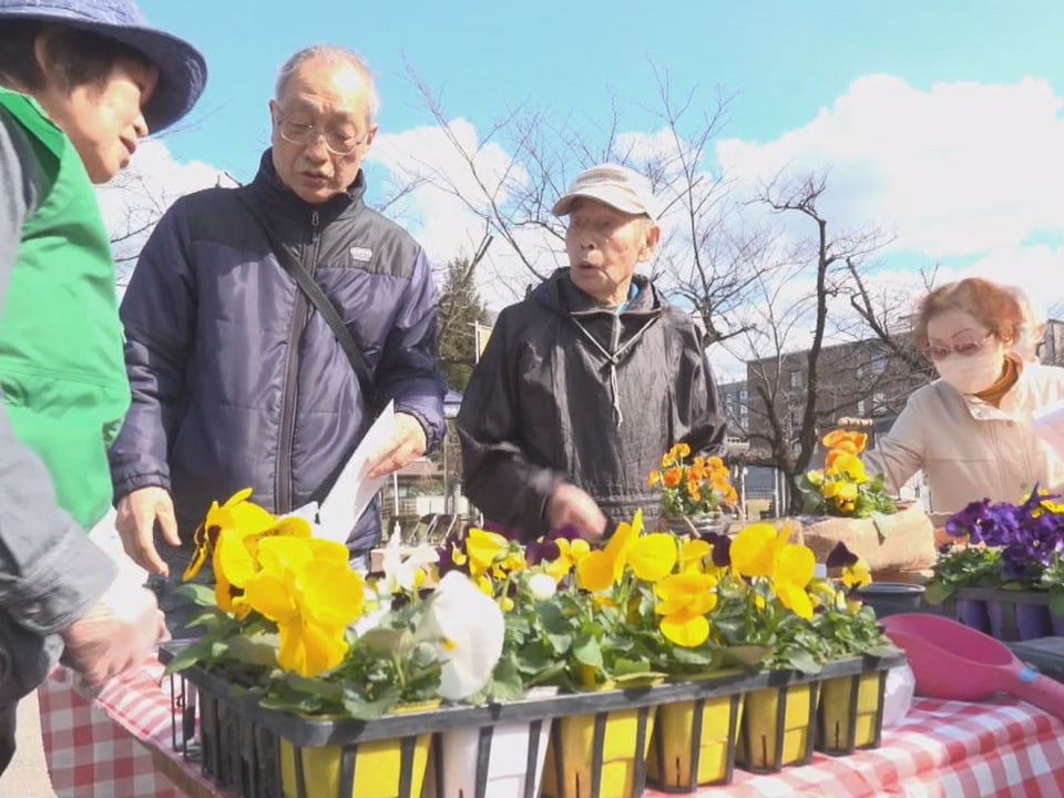 会場を訪れた市民らは、菜の花やヒマワリの種、ビオラやパンジーの苗を受け取り、地震発生時刻には黄色い花を囲んで黙とうしました。