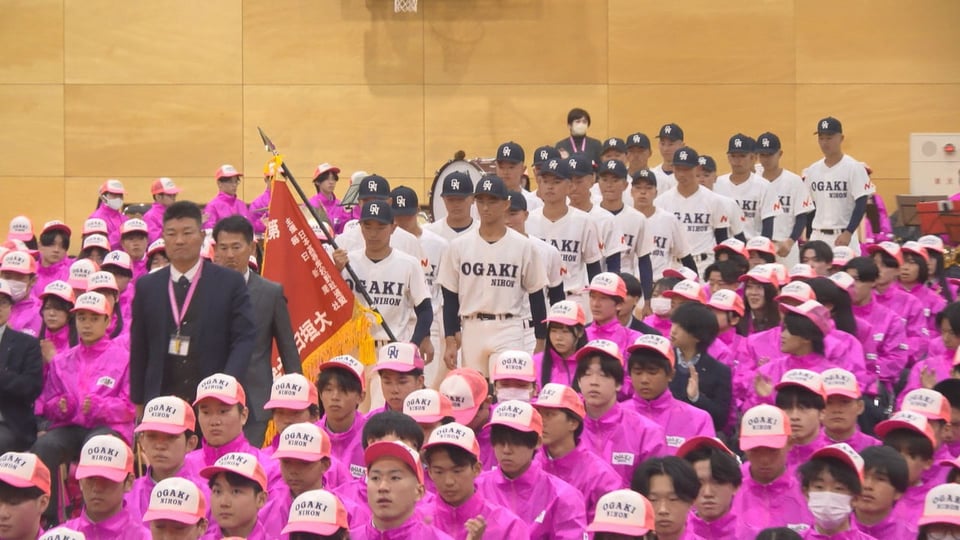 19日に開幕する第98回選抜高校野球大会=春のセンバツに出場する大垣日大高校硬式野球部の壮行会が13日、開かれました。