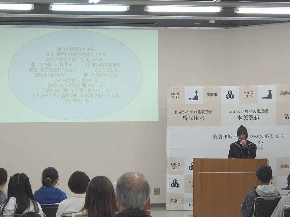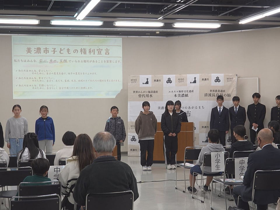 宣言の策定には、美濃市の全7小中学校が参加し、アドバイザーに教育社会学者で名古屋大学大学院の内田良教授を迎えて児童生徒らは国連の「子どもの権利条約」を参考に学校や家庭、地域で自分らしく生きる権利や周囲とのよりよい共生について話し合いを重ねてきました。