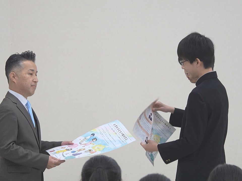 報告会では、宣言の考案に携わった児童生徒らが順に宣言を読み上げ、宣言を記したチラシやポスターを受け取った篠田市長は、「これからの美濃市づくりを子どもたちと一緒に考えていきたい」と期待を寄せました。