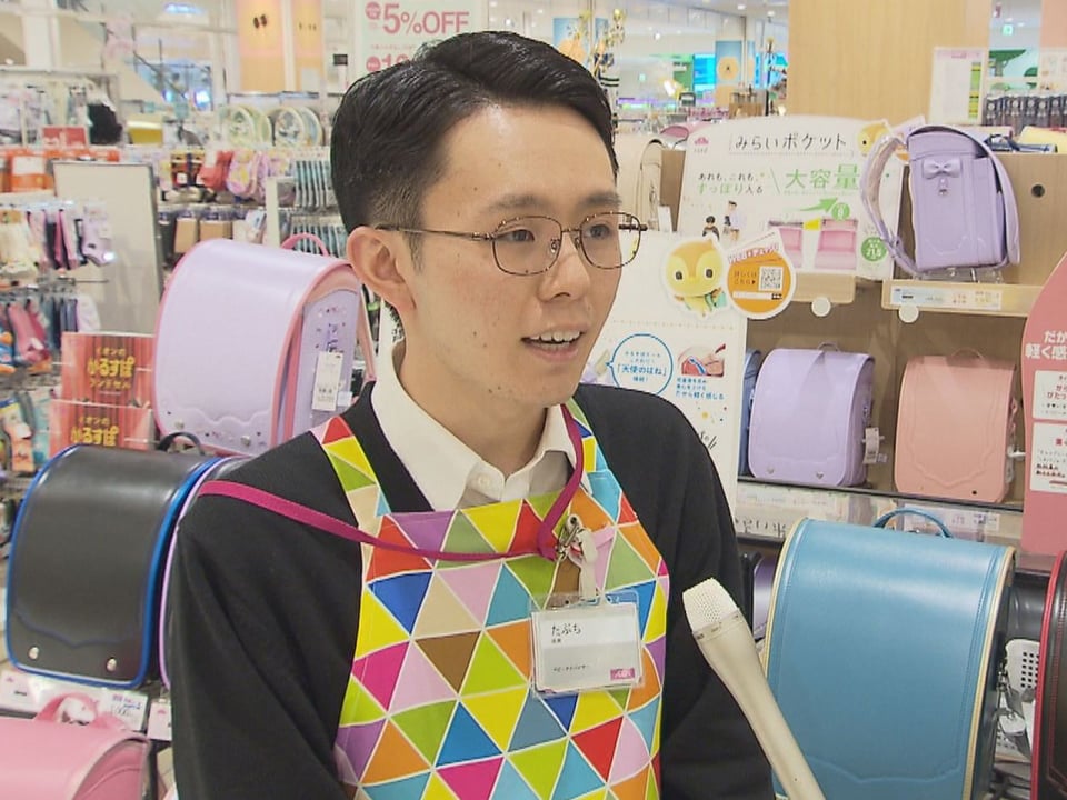 「今年の進化点はデザインとカラーの拡充です。例えば『かるすぽエール』ですと3種類から5種類にデザインを増やしております。お子さまの個性に合わせて選択の幅を広げております。当店では4月3日からランドセルフェスを開催しますので、お近くにお越しの際は、ぜひお立ち寄りください」