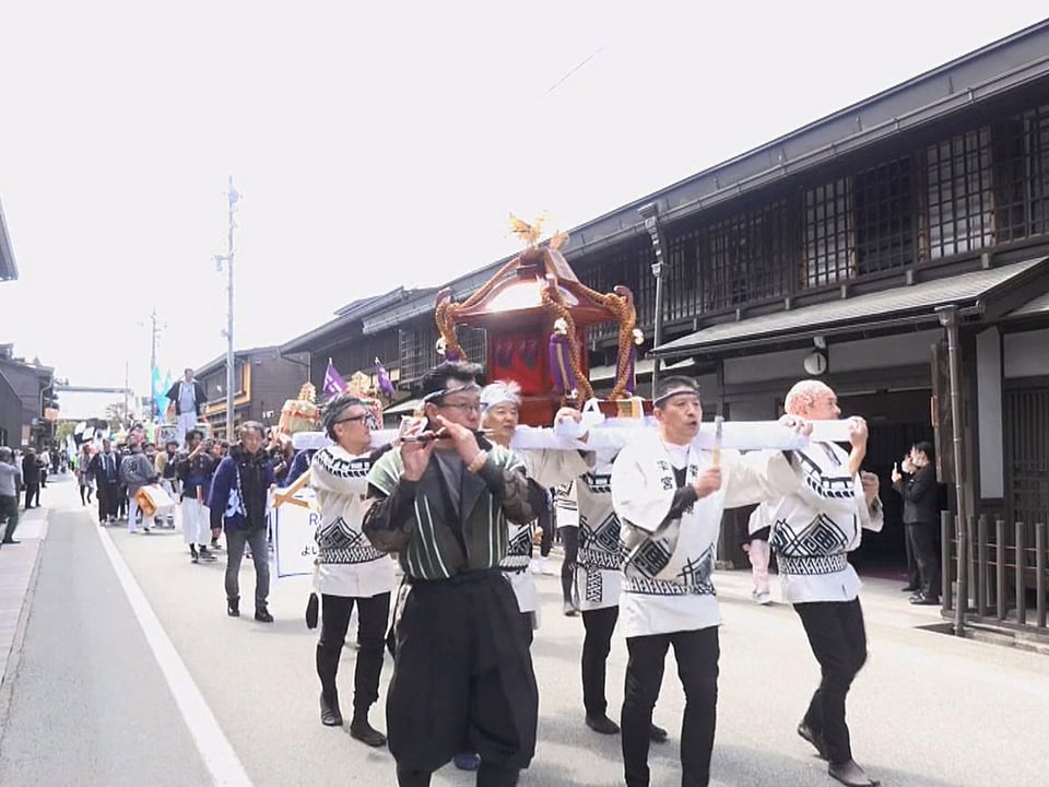 - 新酒の完成を祝う「雫宮祭」 酒樽みこしが町並み練り歩く 岐阜県高山市