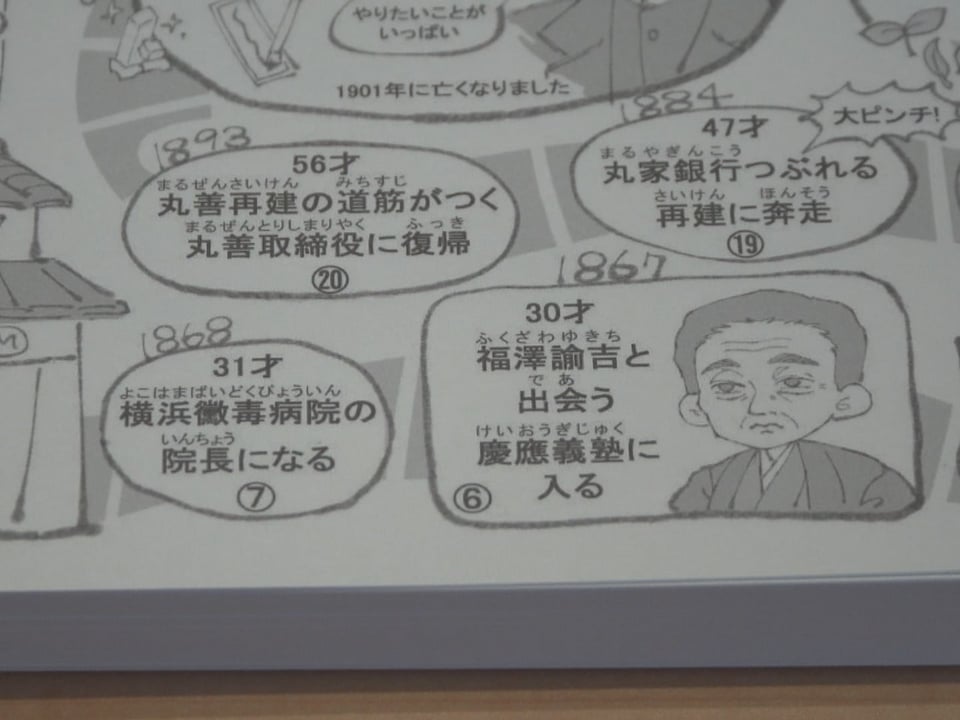 資料展では、医師として郷里や東京で活躍しながら福澤諭吉らと関わって「丸善」の起業に携わるなど実業家としての一面も持ち合わせた有的の「二刀流的」人生を写真や年表で分かりやすく紹介。