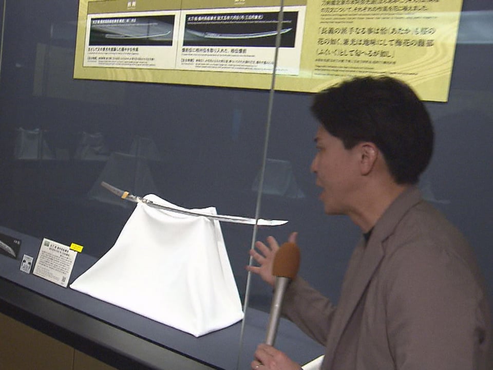 刀にある三日月のような模様が特徴で、南北朝時代に活躍した刀工・兼光が1300年代に作り、戦国武将の上杉謙信の愛刀として上杉家に代々、伝わりました。戦後アメリカに渡っていましたが、名古屋刀剣博物館がオークションで落札し、所蔵を記念して公開されました。山田怜門学芸員は「三日月兼光が作られた背景や様々な刀剣を通して時代の流れを感じてもらえれば」と話していました。