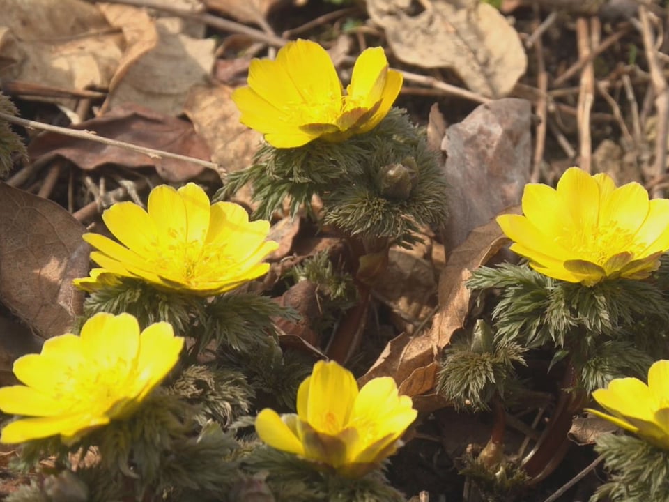 - 春の到来告げるフクジュソウ 岐阜県高山市丹生川町